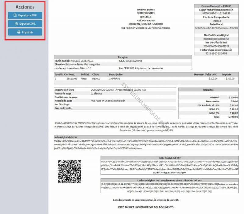 Se mostrará la factura realizada, podrás ver o descargar el