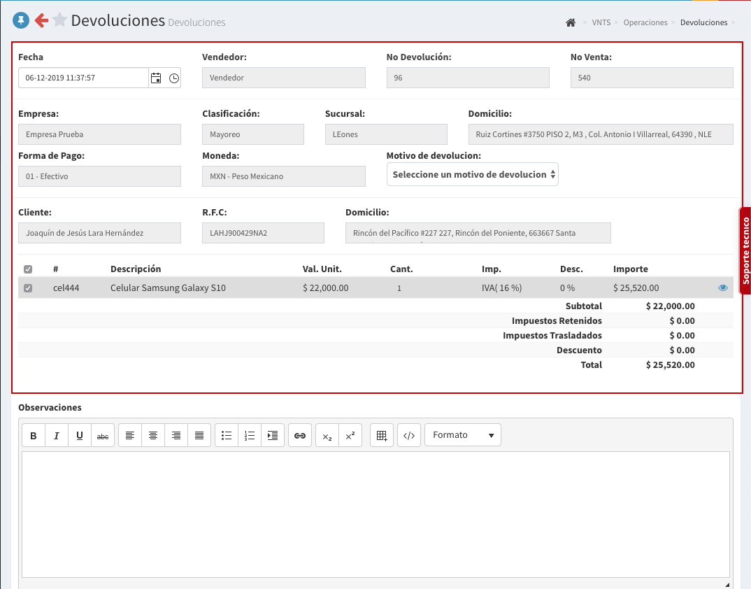 devoluciones