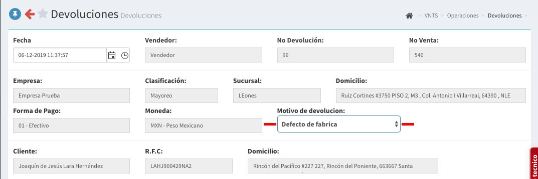 devoluciones